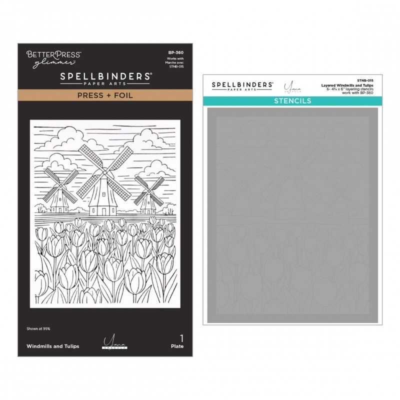 Windmills and Tulips Press + Foil and Stencil Bundle is part of the Yana's Tulips Collection by Yana Smakula and includes BP-360 Windmills and Tulips Press + Foil Plate and STNB-015 Layered Windmills and Tulips Stencil. The plate impresses a wonderful scenery of windmills with a field of brilliant tulips in the foreground. The set of six stencils guide you to color and bring the scene to next level of amazing! The stencil set is exclusive to this bundle. They are made of durable mylar stencil material.