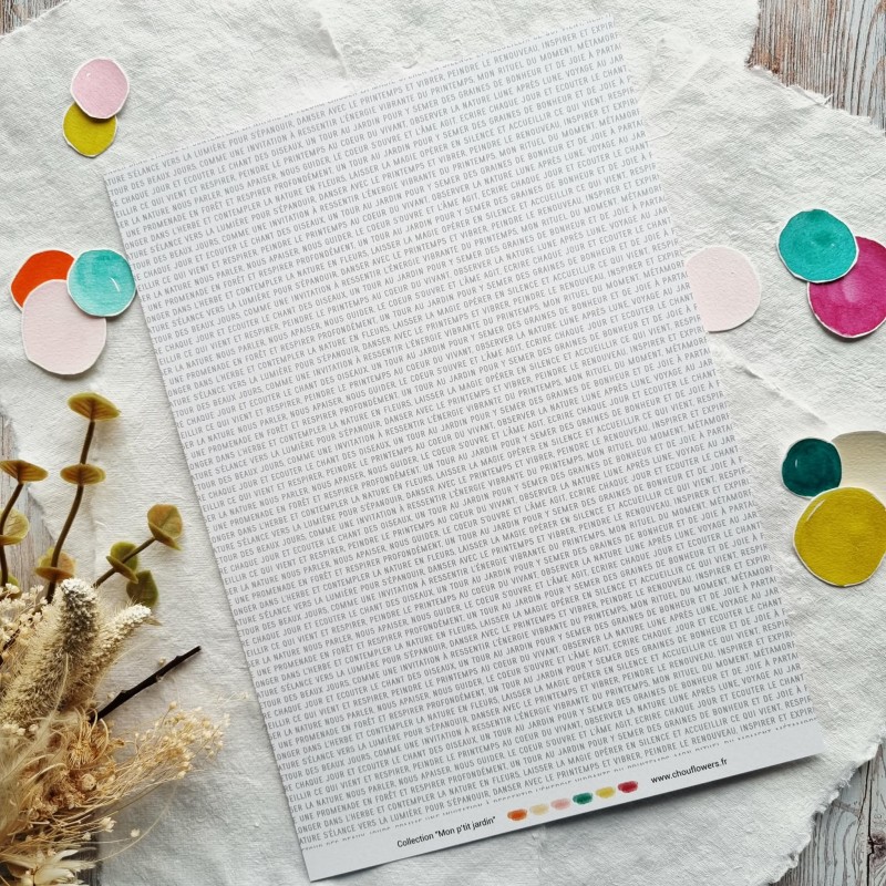 CHOU & FLOWERS PAPIERS A4 PAPETERIE CREATIVE "Mon P'tit Jardin"
