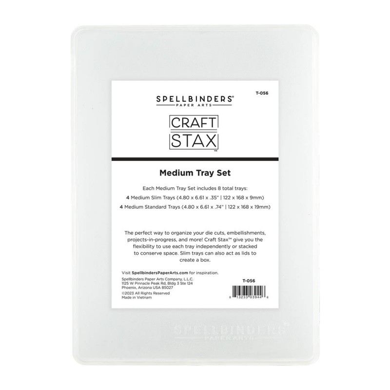 This set includes eight stackable frosted plastic trays that combine to create four medium sized storage boxes. These versatile trays can be used in multiple ways: combine a slim tray with a standard tray to create a storage box, use each tray seperately, or stack them all together for a space-saving storage solution. Craft Stax are the perfect way to organize your die-cut shapes, embellishments, work-in-progress projects and more. Designed with die cutting in mind, these slim trays are ideal for holding tiny die templates or cut pieces to keep all your projects both handy and safe, as well as portable. Use them seperately or all together - Craft Stax gives you the versatility to sort and store your projects your way!
