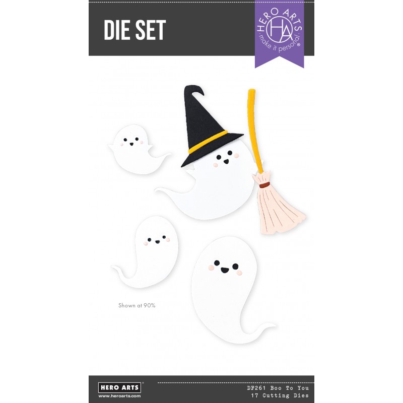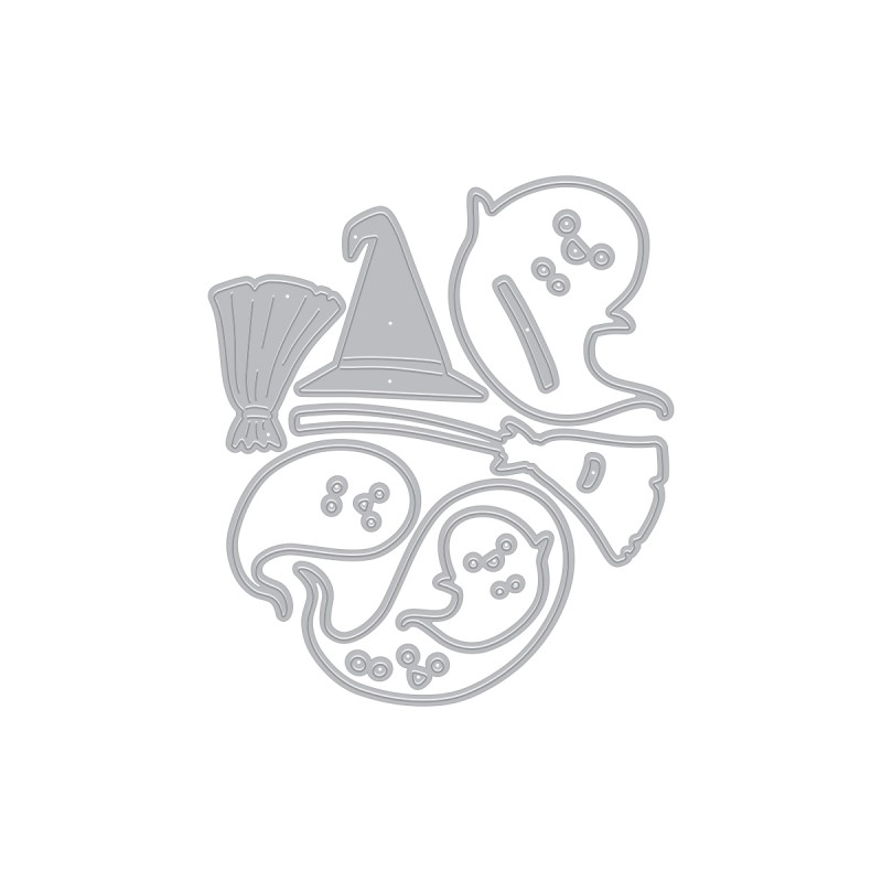 Get ready for some frightfully fun crafting with the Boo to You Die Set! Featuring 17 etched dies, this delightful set includes everything you need to create a whimsical scene of friendly ghosts, a witch’s hat, a broom, and charming facial features.
