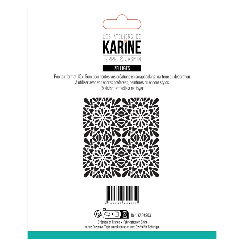 LES ATELIERS DE KARINE "TERRE ET JASMIN" POCHOIR ZELLIGES