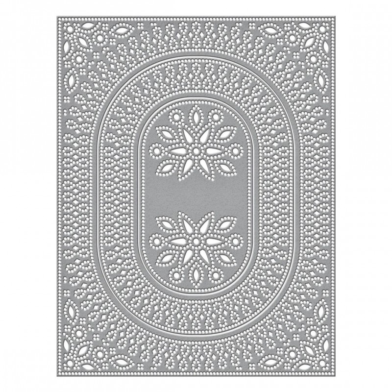 Infinity Punch & Pierce Plate Etched Dies part of the Stylish Ovals Collection. This thin metal die plate has a lovely combination of infinity loops and piercing designs that covers an A2 size card front. It also cuts into three different pieces (an outer, middle, and center layer). Any card maker who appreciates intricate designs and texture, needs this in their die-cutting collection! Use alone or pair the set with S5-562 Essential Stylish Ovals Etched Dies.