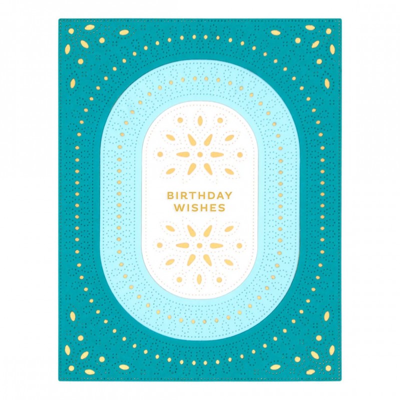 La plaque de découpe Infinity Punch & Pierce Plate Etched Dies fait partie de la collection Stylish Ovals. Cette plaque de découpe fine en métal présente une belle combinaison de motifs en boucles infinies et de perforations qui couvrent le devant d’une carte de taille A2. Elle découpe également en trois parties distinctes (une couche extérieure, intermédiaire et centrale). Tout créateur de cartes appréciant les designs détaillés et les textures devrait absolument l’ajouter à sa collection de matrices de découpe ! À utiliser seule ou en combinaison avec le set S5-562 Essential Stylish Ovals Etched Dies.